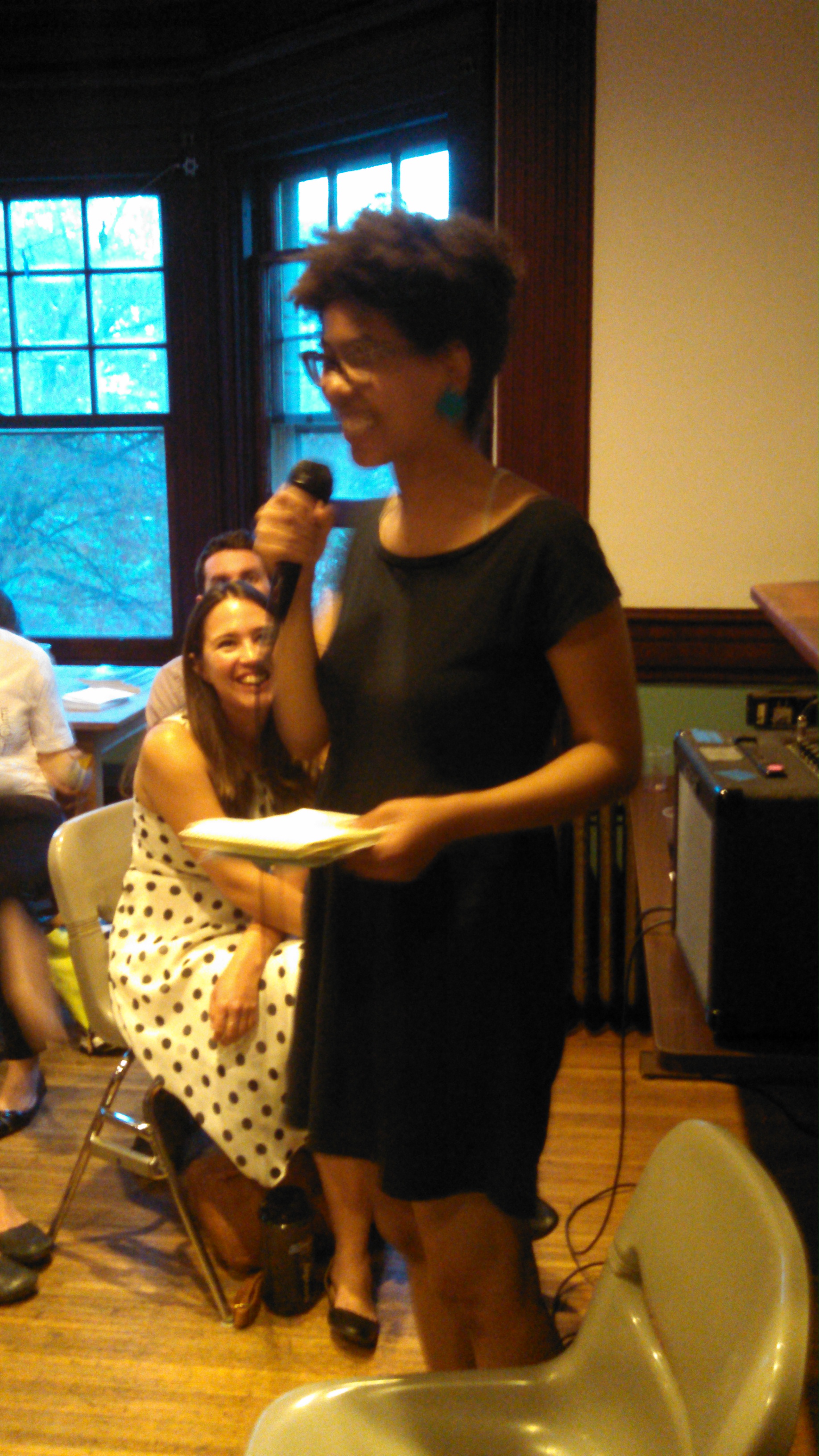 Elizabeth Hoover was next, and she read some utterly amazing poems, with subjects ranging from Coco (of Ice-T & Coco) to hysteria (a theme picked up later by poet MaryAnn L. Miller). The smart, feminist themes running through her work were so strong, and I loved what she had to say about trigger warnings. She is also just a straight up hoot. Pictured below.