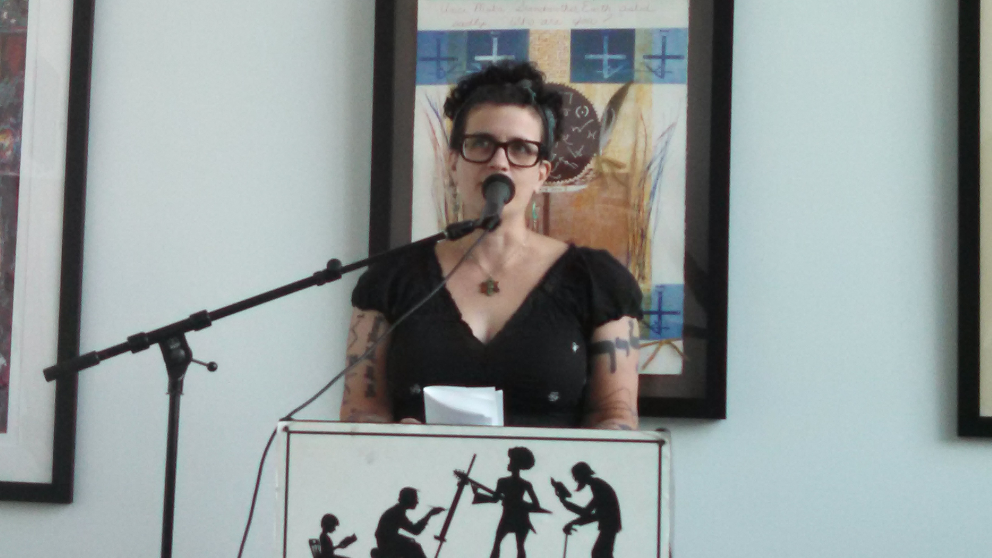 Next was Violet LeVoit (link to her Goodreads page, which has some naughty words on it, just for those of you reading this at work!), who performed some amazing feats of tongue-twisting poetry. Her sound is super well-honed, as are the dynamics she creates between the figures in her poems. It was such a joy to hear her read!